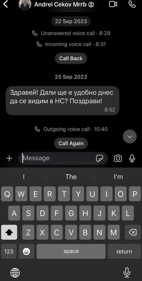 Делян Пеевски пусна до медиите снимки от чат с Андрей Цеков, когато е бил министър. С тях той показва, че двамата са били в неговия кабинет и не се е налагало да бъде воден от Николай Нанков.