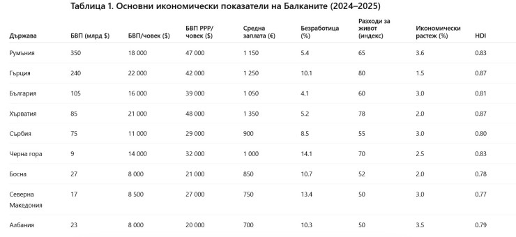 Най-ниски икономически показатели сред разглежданите държави имат Северна Македония, Босна и Херцеговина и Албания.