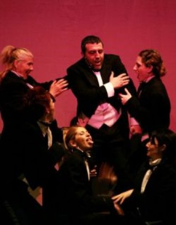 Актьорите пеят, танцуват и играят различни скечове под музикален съпровод, като заливат с музика салона и забавляват със смешни етюди публиката.