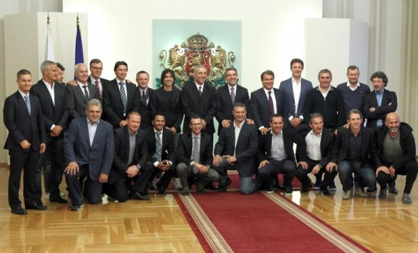 Стоичков беше придружаван на "Дондуков" 2 от цяла плеяда незабравими футболисти, спечелили в кариерите си всички възможни персонални отличия и отборни футболни купи. При президента дойдоха и част от футболистите, станали четвърти в света с националния отбор на България през 1994 година.