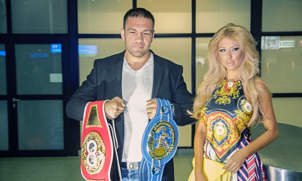 На аеропорта Кобрата позира с двата шампионски пояса - на Европейския боксов съюз и интерконтиненталния на Международната боксова федерация.