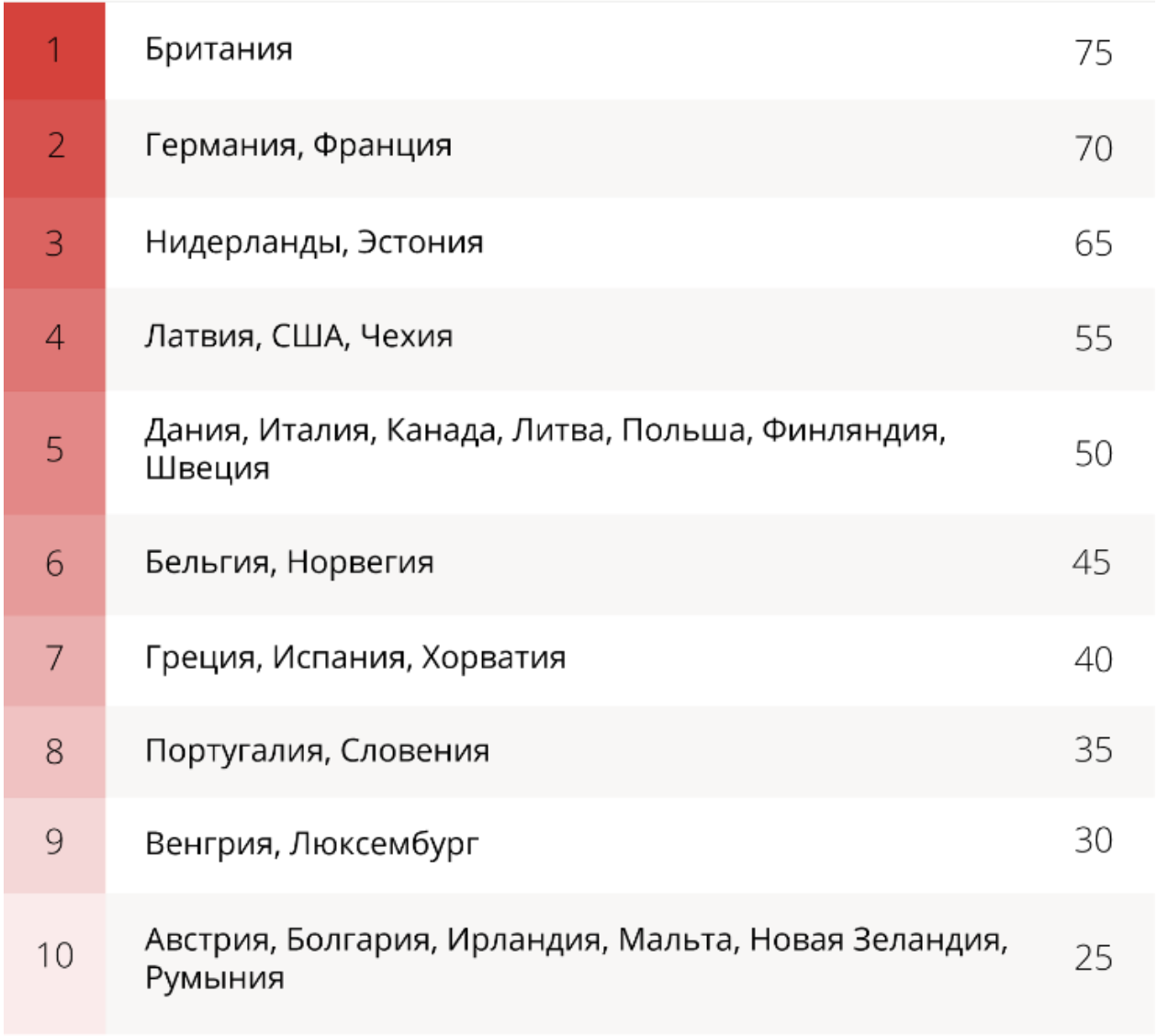 Той каза, че е важно ясно да се демонстрират разликите между позициите например на Франция и Ирландия, като отбеляза, че крайните цифри като цяло отразяват текущата ситуация в световната политика: днес Великобритания, Германия и Франция наистина „инвестират“ повече от други в конфронтация с Русия.