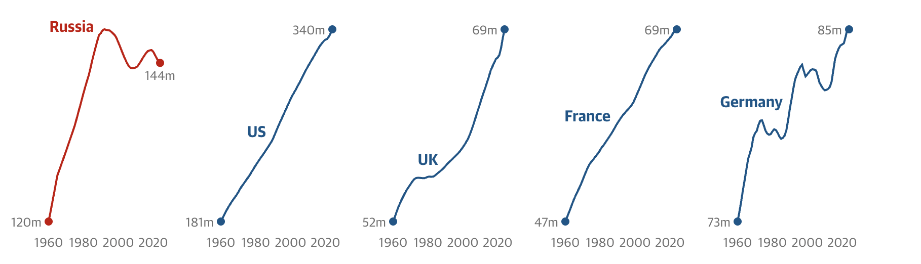 Русия има проблем с населението: Население по години, 1960 до 2024