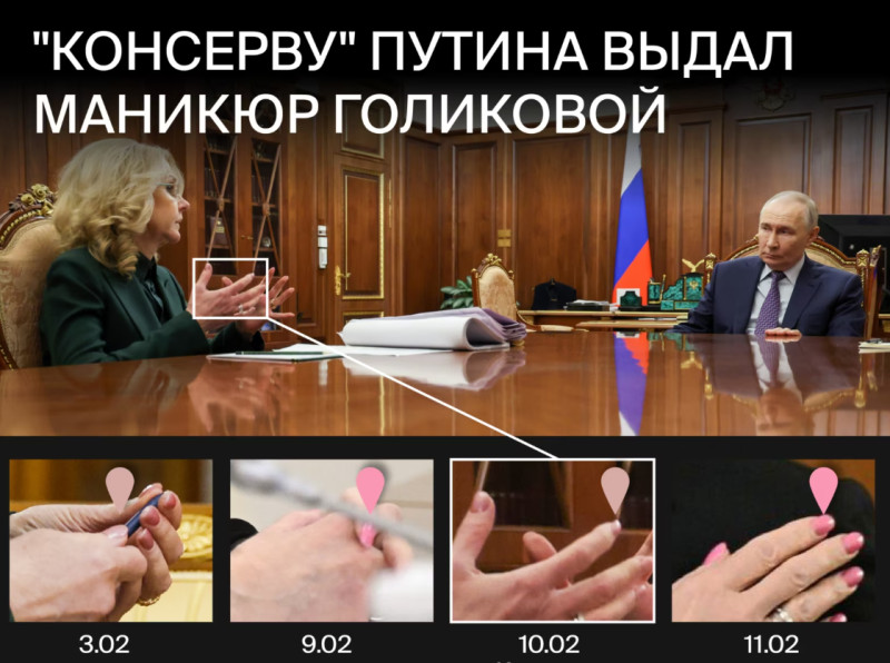 На 10 февруари Кремъл публикува информация за срещата между Путин и Голикова. На тази среща Голикова имаше прашнорозов маникюр. Въпреки че точно в деня преди публикуването на информация за срещата в Кремъл и в деня след нея, на публични събития, ноктите на Голикова бяха лакирани в по-ярък нюанс на "Барби" розово.