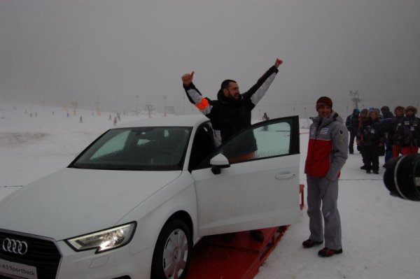 Щастливият собственик на колата се изправи в битка срещу над 400 други ентусиасти, които се състезаваха в "Ловци на съкровища". Общо организаторите раздадоха 28 награди, скрити в ковчежета под снега.