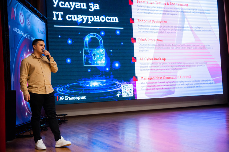 Представители на екип „Киберсигурност“ в А1 България - Андреа Сотиров, мениджър екип „Киберсигурност“ и Мария Балабанова, старши инженер „Оценка на сигурността“ в А1 България, показаха методи за контролирани тестове за пробив на сигурността (Penetration Testing) и Red Teaming. Технологичната компания предлага тези възможности като част от решенията за киберсигурност, с които помага на корпоративните клиенти да идентифицират потенциални уязвимости в IT системите на организациите си.