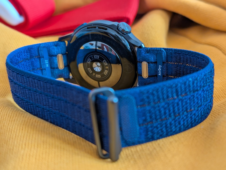 Едно от основните му предимства за хора с тънки китки е каишката. Тя е изработена от вълна, а материята е с 25% по-дишаща спрямо тази на предходния модел. Ключовото предимство е, че каишката е с лепящ се механизъм на закопчаване, така че дори хората с тънки китки могат да го напаснат перфектно по ръката си. Това пък гарантира, че сензорите от долната страна на устройството ще измерват много по-точно всички показатели, защото няма да има разместване. В кутията ще откриете още една каишка, която е по-подходяща за спорт, тъй като е силиконова и се мие лесно. Изборът на каишки е ключов, защото при бягане е особено важно часовникът да стои стабилно на ръката, да не подскача и да не се върти – както от гледна точка на удобство, така и от гледна точка на прецизността на измерване.