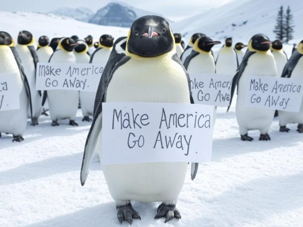 Пингвините се превърнаха в неочакван талисман на противниците на търговската война, подета от Доналд Тръмп чрез въвеждане на мита.