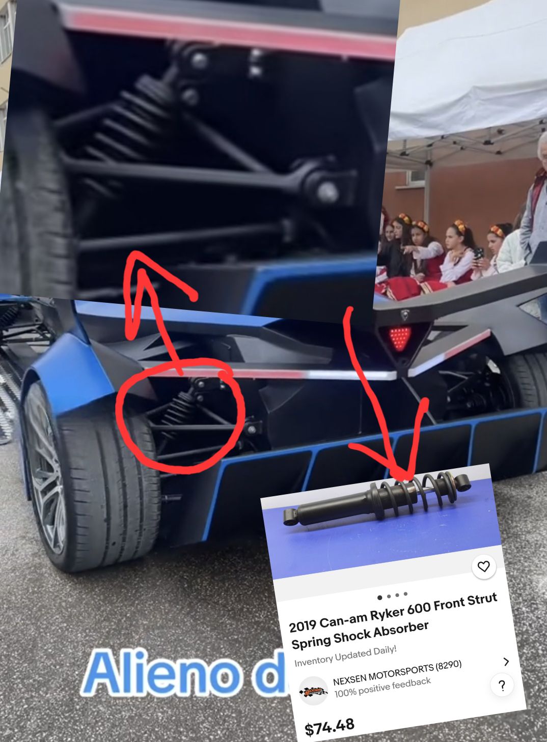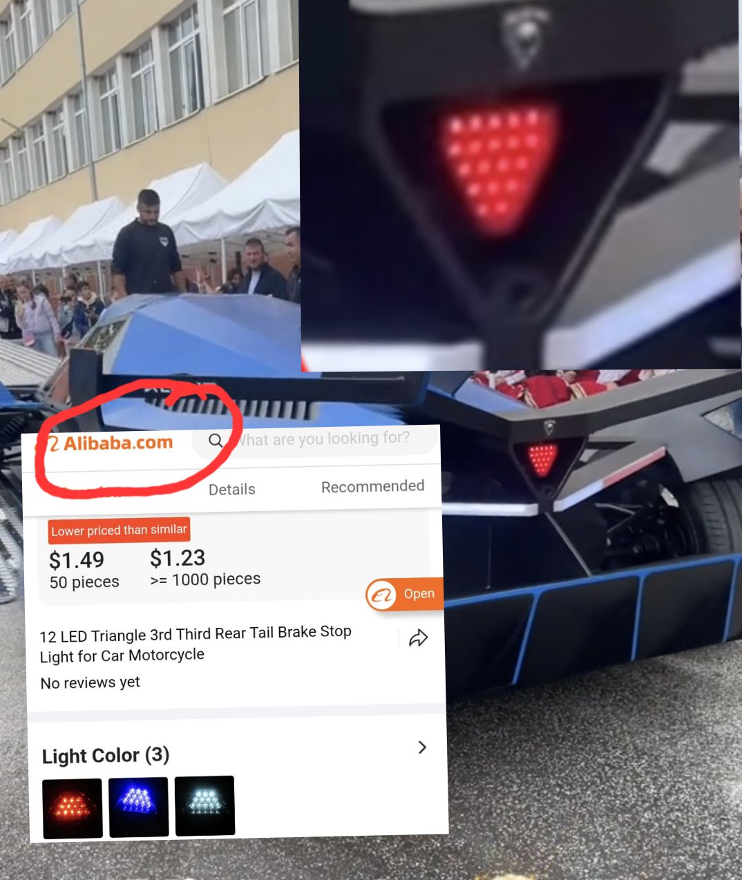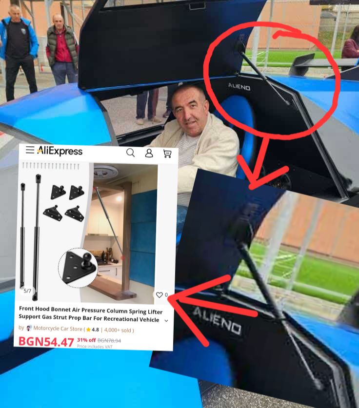 То обаче не спря интернет потребителите отново да "разкостят" показания невероятен автомобил и да покажат колко евтини са всъщност частите му. Амортисьорите, вдигащи вратата, която миналата година трябваше да бъде свалена, за да се качи човек в колата, се оказаха от AliExpress на цена от 54 лева, а стопът може да бъде открит в AliBaba за 1 долар. За въпросното предно стъкло, което преди не съществуваше, се появиха съмнения, най-вече поради ръбатия му дизайн, че въобще не е стъкло, а по-дебело пластмасово прозрачно фолио.