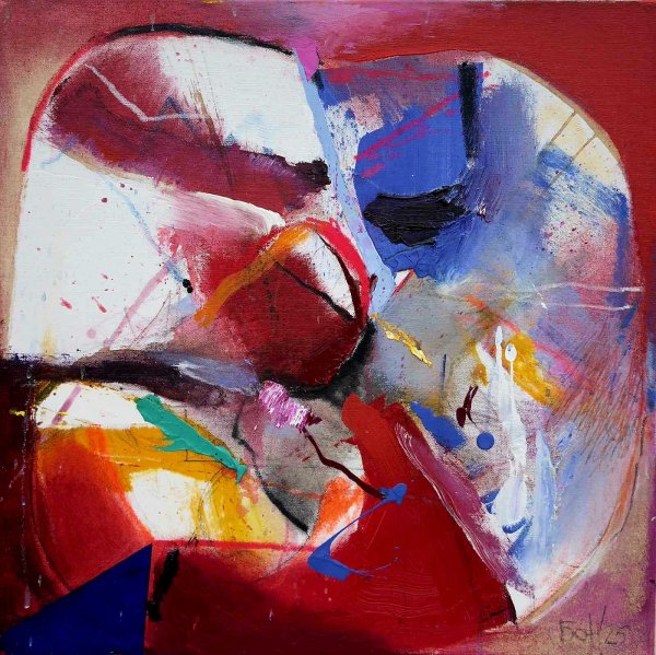 Че това не е лесна работа, лесно се разбира. Действа със стилизирани намеци. Загадки от цветни тонове и полутонове, неусетно нахълтващи в зрителската душа. Бързо рушащи прегради, с които светът я дели сама от себе си. Пламен Бонев я увлича с цветните си повърхности, който парцелира и води с ефирно драснати линии. Резултатът е съвкупност от цветове, структури и контрасти с неустоима сугестивна сила. Лесно разпознаваеми като... „Боневи“.