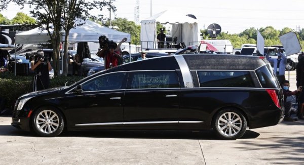 Преди пристигането на ковчега работници направиха пред църквата голяма цветна аранжировка, включваща от едната страна бели рози във формата на сърце и инициалите BLM (Black Lives Matter) - "Животът на чернокожите има значение", направени от сини рози и поставени върху сърцето, а от другата страна - червени рози, които изглежда образуваха вдигнат юмрук.