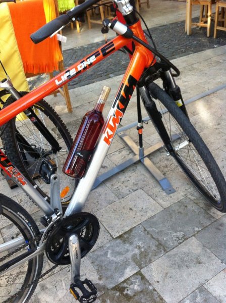Някои любители на колоезденето вместо с вода обичат да си утоляват жаждата с вино :)