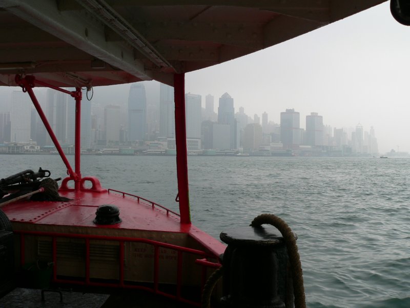 Пътуване с корабчето на градския транспорт в залива на Хонг Конг.