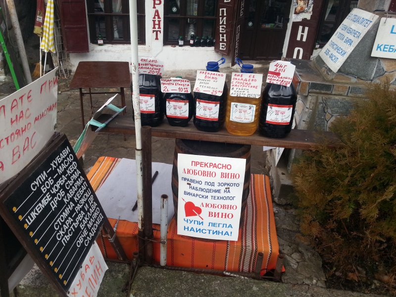 Разхождайки се по улиците на Мелник всеки желаещ може да си закупи "Любовно вино", гарантирано от производителя, че "чупи легла".