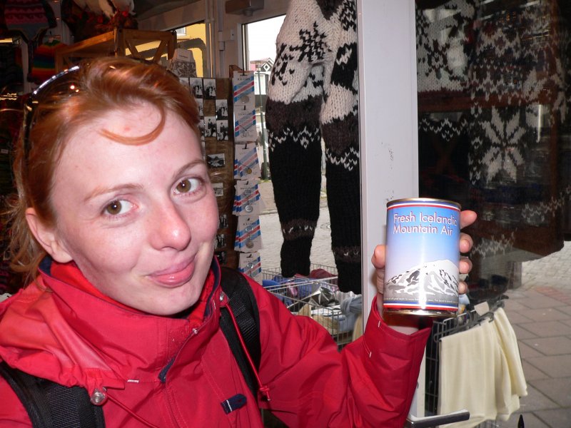 Някои хора от сутрин до вечер работят, а други за 10 евро продават една празна консервна кутия с исландски въздух на туристите! :)) Снимката е направена в магазин за сувенири в Рейкявик, Исландия.