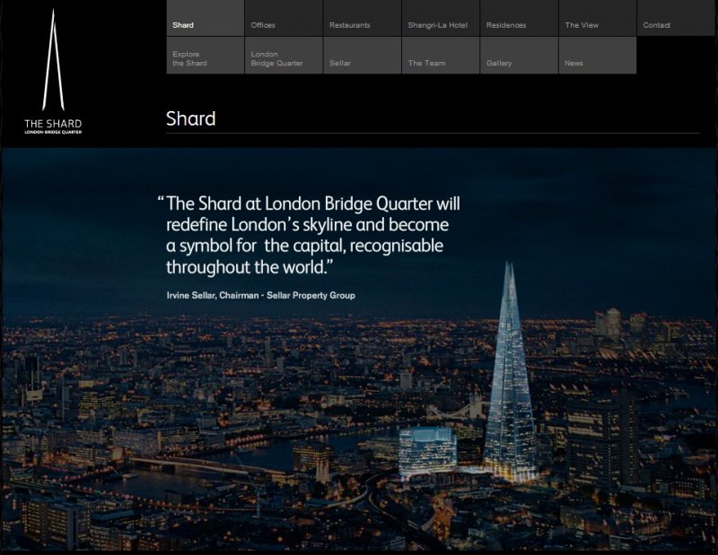 Небостъргачът The Shard ще бъде отворен за посетители на 1.2.2013 г., съобщава BBC. Сградата е висока 309 метра, а желаещите ще могат да се качват до 72 етаж, където от височина 244 метра ще имат възможност да разгледат целия град. Скрийншотът е от the-shard.com
