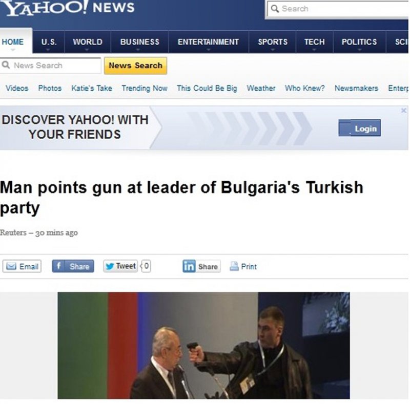 Това се случи Dnes, за важното през деня ни последвайте и в Google News Showcase.Yahoo : Мъж насочва оръжие към лидера на Турската партия в БГ
