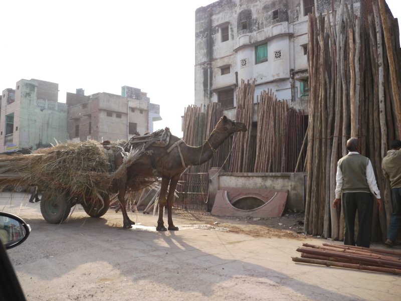 Каруца с камила в предградията на Агра (Индия).