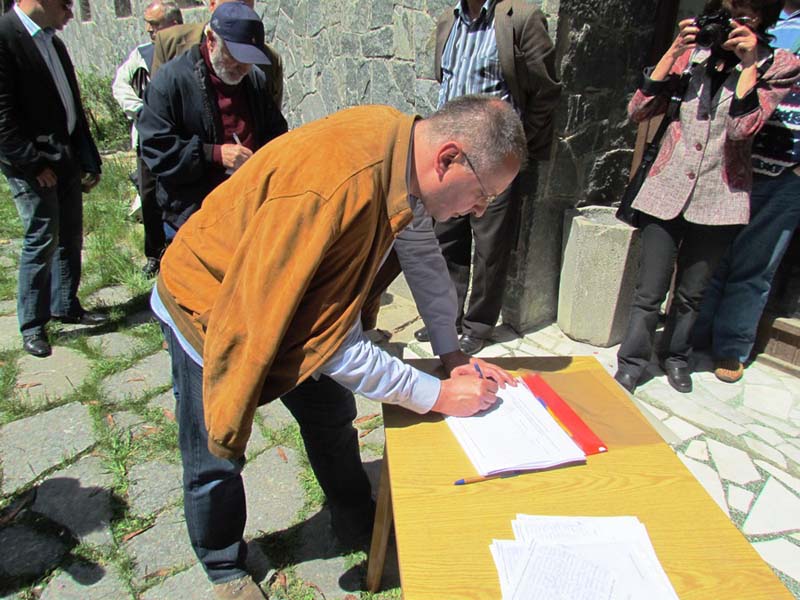 Сергей Станишев дава личния си подпис при събирането на гласовете. БСП успя да събере 180 000 подписа за да предизвика първия референдум в демократична България.