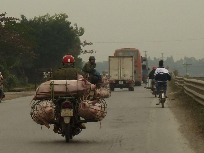 Товарен мотор във Виетнам. Виетнамците пренасят почти всичко с мотори от домашни животни до гардероби и други обемисти предмети.