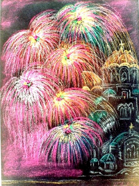 Падащи фоерверки над катедралата "Ал.Невски" и присъстващите на площада (22 Ноември 1999г.)