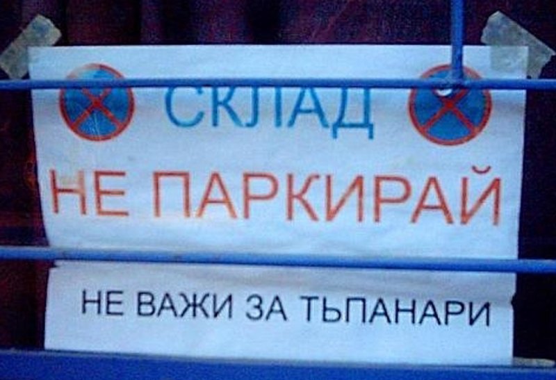 Надпис пред склад! Никога не мога да разбера тези които знаят, че ще пречат, но въпреки това спират