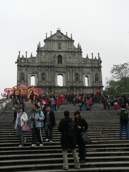 Останки от фасада на църква от 14-15 век в бившата португалска колония в Макао.