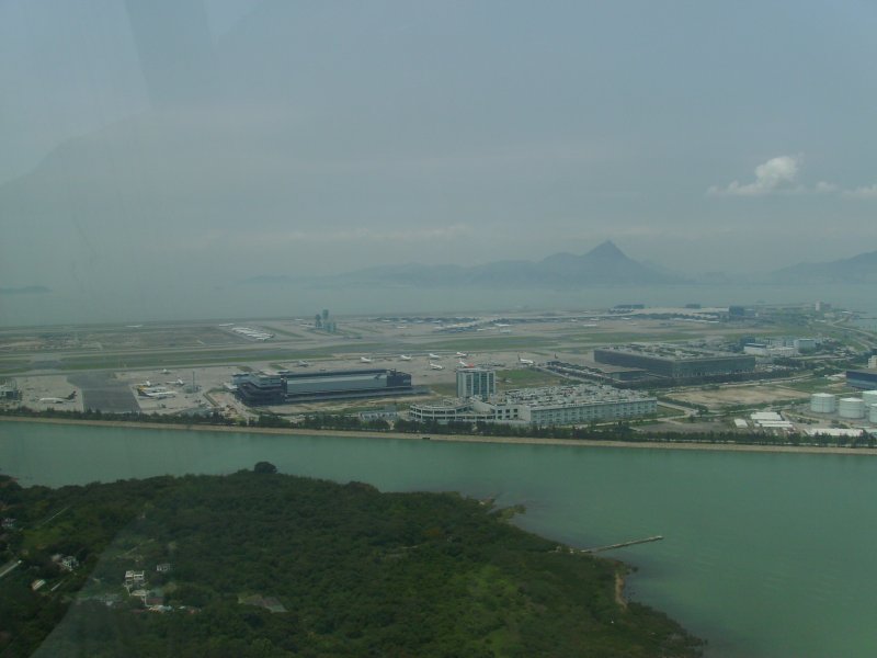 Летището на Хонг Конг, погледнато от кабинковия лифт, водещ до остров Лантау.