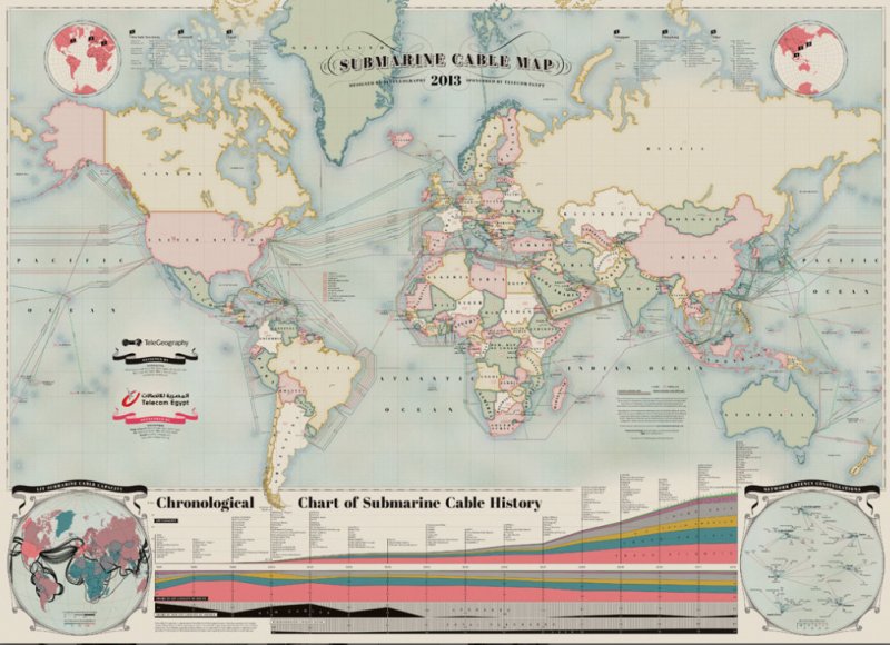Европа и Северна Америка са доста добре свързани подводно. Между Африка и Южна Америка обаче има само един кабел, а между Африка и Австралия и Австралия и Южна Америка изобщо няма директен подводен кабел.