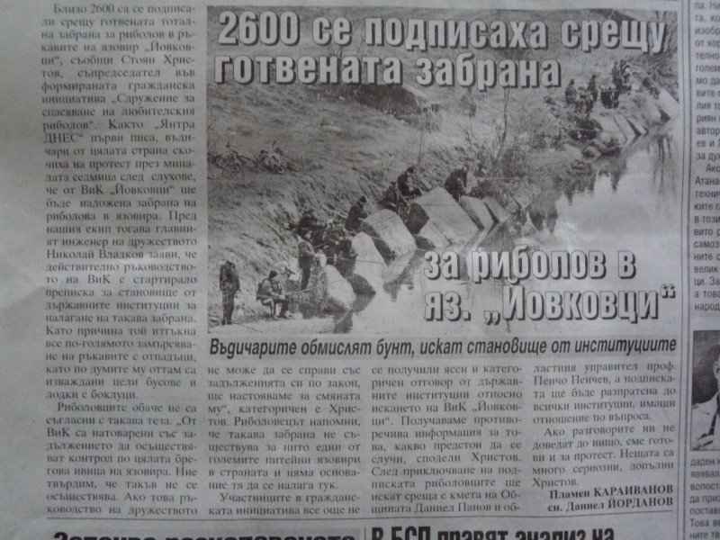 Подписка против забрана за риболов в яз. Йовковци
