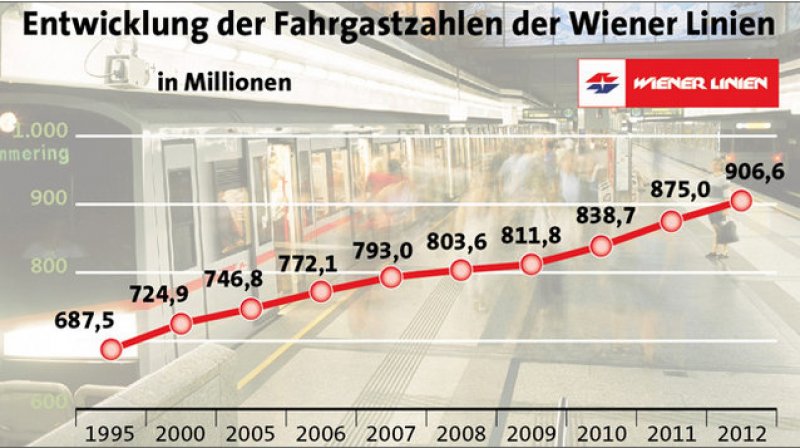 От 1995-та година броят на ползващите градския транспорт е нараснал с 32% от 687 милиона на 906 милиона пътувания. Не е случайно, че няколко поредни години Виена я избират за най-добрия град за живеене в света!
