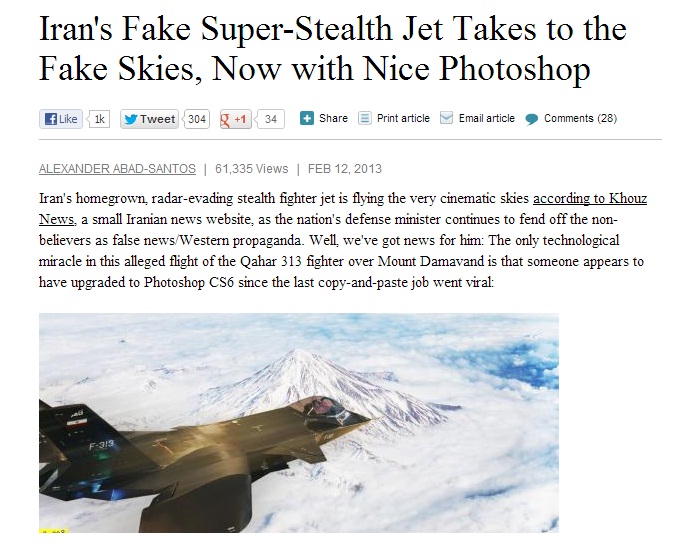 Новата "гордост" на иранската военна програма е този изтребител, който според специалистите дори не може да лети. Ирански блогър разкри измамата. Източник huffingtonpost.com