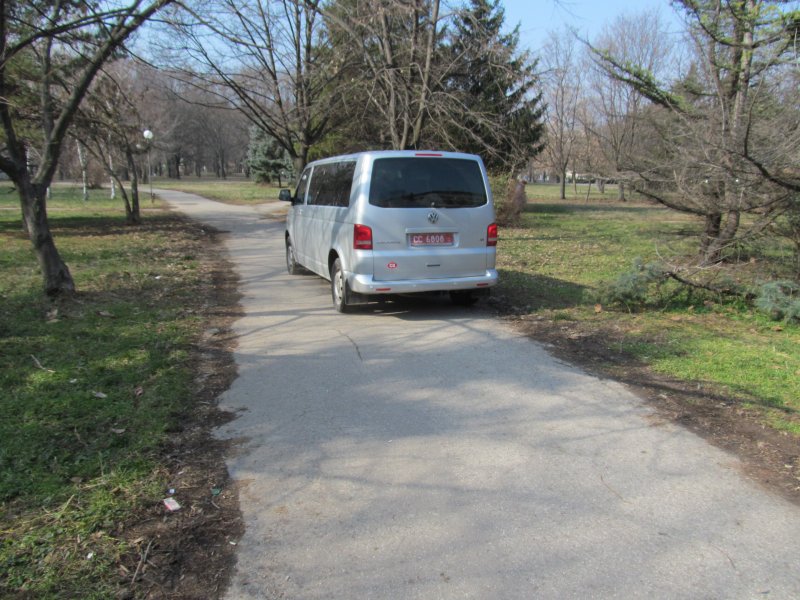 Ето така се управлява празен, пътнически бус с "червени номера" - през парка на възрожденците в РУСЕ.