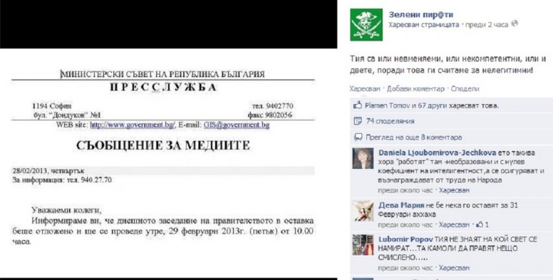 "Информираме ви, че днешното заседание на правителството в оставка беше отложено за утре, 29 февруари 2013г. " Тази година нали не е високостна?:)))