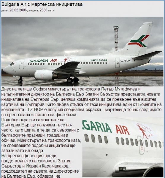 През 2006 г. самолетите на Bulgaria Air бяха украсени с мартеници с цел показване пред света на старата българска традиция Баба Марта. Похвално начинание, което обаче мина и замина без да бъде продължено.