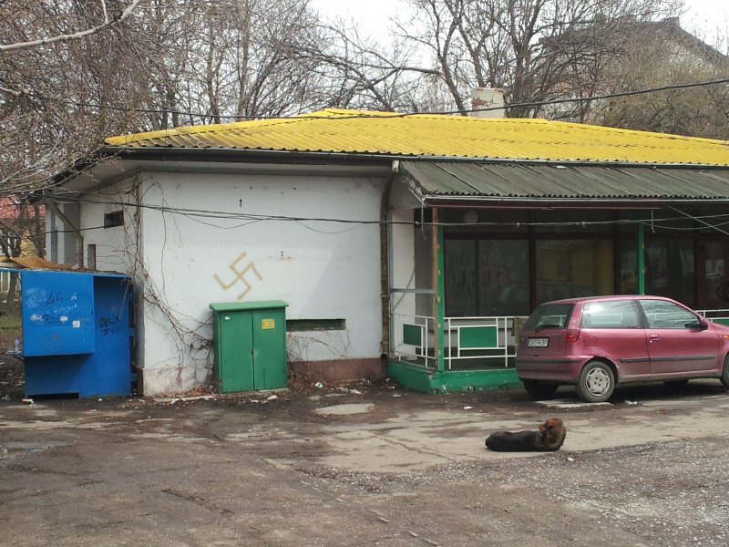 Изоставен ресторант, с изрисуван пречупен кръст, само на метри от 1-во РПУ в София