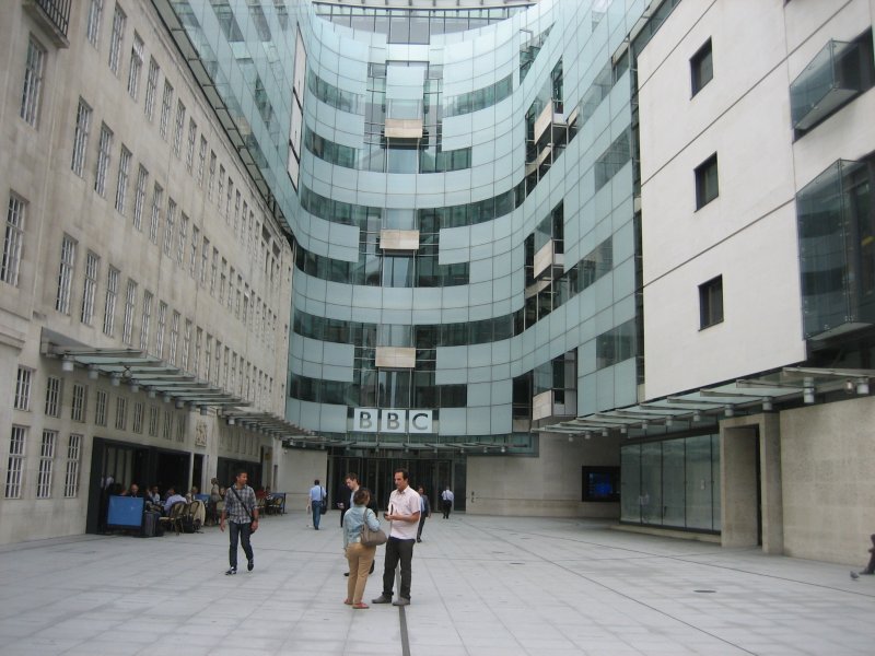 World е постоянна арт инсталация изградена от 750 плочи гранит, светлини, говорители, неръждаема стомана, месинг, изписани имена на места от цял свят и хиляди хора, които ходят всеки ден по площада пред входа на BBC.