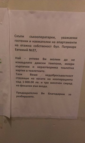 Кой ли съсед е чистил канализацията, че е избеснял така?