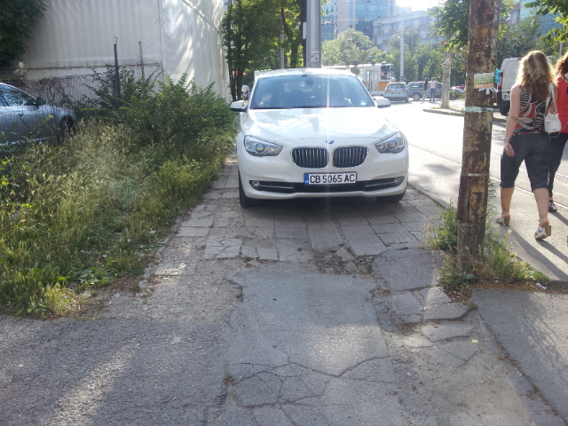 Случката - 16 юни 19:00, тротоарът при последната спирка на трамвай 10 на ул. "Кораб планина". Вляво е платен паркинг, вдясно имаше други места за паркиране, но точно тук тази кола пречи на всички...