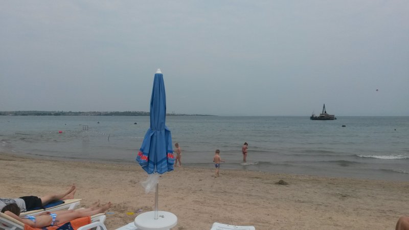 Какво ли прави платформа със скална маса на стотина метра от плажа? Крайбрежието е на Златна рибка.