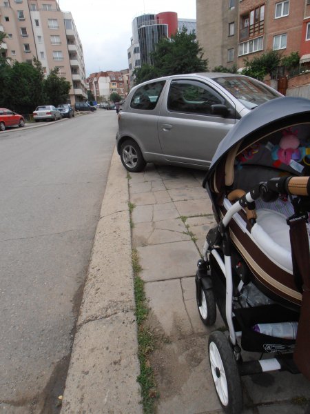 Такова паркиране може да се види на всяка улица в столичния Младост 4.За да премине количката с бебето трябва да слезе на пътното платно. А общината е безсилна. Докога няма да се спазват законите в страната?