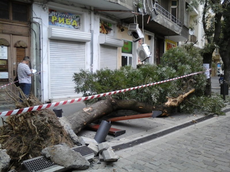 Не, това дърво не е паднало при вятър и буря, а е повалено от пишман шофьор на "Чистота". Станало е в ранните часове на деня на Женския пазар в столицата и за щастие няма жертви. За живущите в кооперацията е само стресЪТ и уплахата.