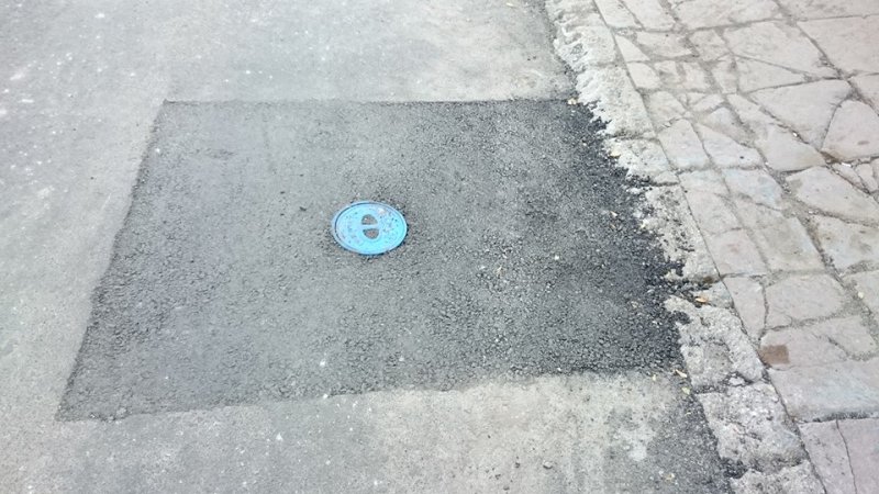 Тази и още една "кръпка" се намират точно до кръстовището на улица Трепетлика и улица Кричим в софийския квартал Лозенец. Вдлъбнатините, извинете, "кръпките" се появиха само ден след като отсечката беше асфалтирана изцяло.