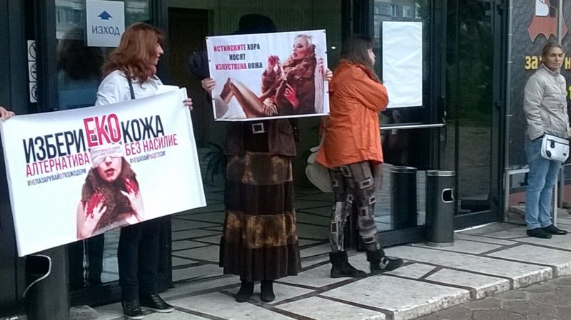 По повод провеждащото се в гр.София, зала "Универсиада" изложение "Кожен свят", пред входа на залата се проведе мълчалив протест срещу кожената индустрия. Протестиращите призоваваха потребителите на дрехи и аксесоари от естествена кожа да прогледнат за бруталната жестокост на кожената индустрия и да спрат да я подкрепят купувайки. И да напомнят на всички, че вече има достатъчно качествени материи от изкуствена кожа, които не са продукт на смърт, кръв и жестокост.