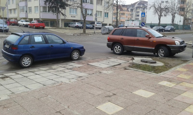 Това е обичайна гледка. Постоянно има спрени автомобили на ъгъла на улицата и на пешеходната пътека.