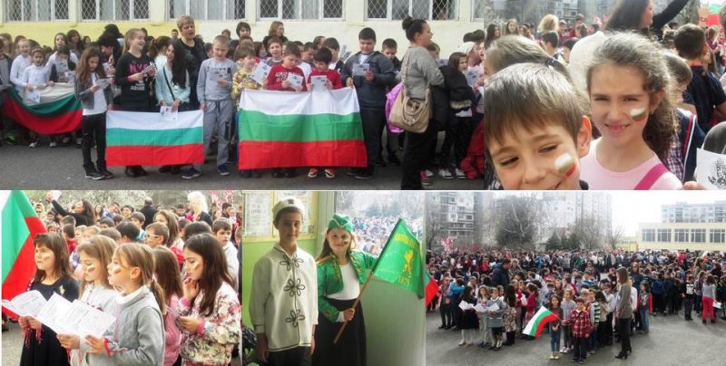 "Нека се обичаме повече, за да се защитаваме взаимно и да се гордеем с нашата култура и история". С този призив директорът на ОУ "Антон Страшимиров" Бургас прикани ученици и учители да изпеят най-известните възрожденски песни. Сърцата на всички ликуваха под звуците на "Стани, стани юнак балкански", "Къде си вярна ти любов народна", "Вятър ечи, Балкан стене", а от лицата на малчуганите весело се усмихваше българският трикольор.