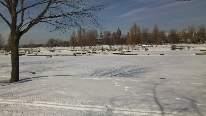 Зимата в Монреал не си е заминала още. Може да ловите риба в леда или да карате ски. Поздрави от Монреал!
