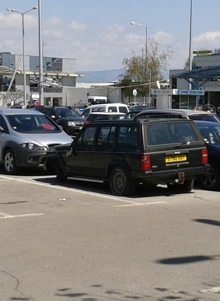 Изоставен и разграбен автомобил на паркинга на Терминал 1 на Летище "София". Очевидно не се осъществява никакъв видеоконтрол и както са могли да свалят гумата, така са могли да поставят в автомобила взривно устройство например. Все пак говорим за паркинг в непосредствена близост до сградата на терминала и до спирка на обществения градски транспорт.