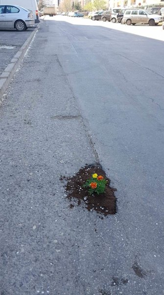 Като никой не прави нищо за дупките, поне е по-красиво и се забелязва!