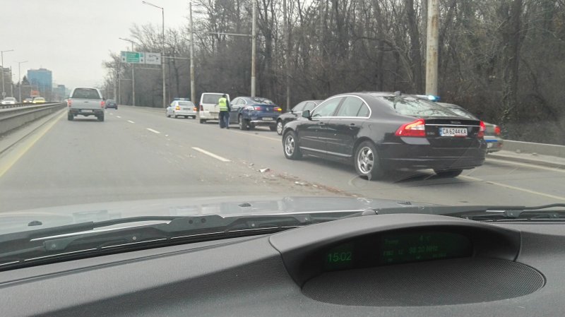 Катастрофа на Цариградско шосе този следобед между Орлов мост и Плиска. Само ламарини, но все пак има тапа преди катастрофата!